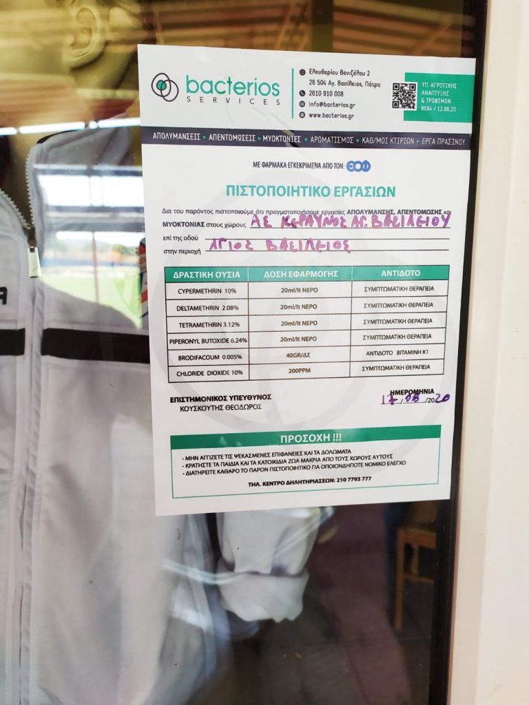 Η εταιρεία Bacterios που πρωτοπορεί στο χώρο των καθαρισμών είναι υπεύθυνη για την απολύμανση όλων των χώρων και την ευχαριστούμε θερμά για την καθημερινή της παρουσία στο «Θ. Χρυσανθόπουλος»